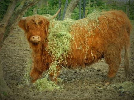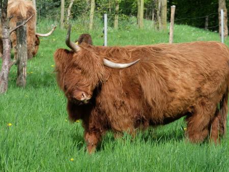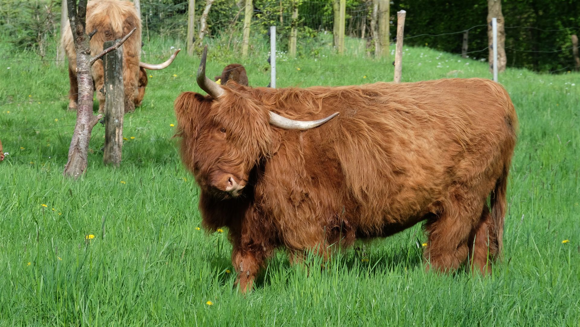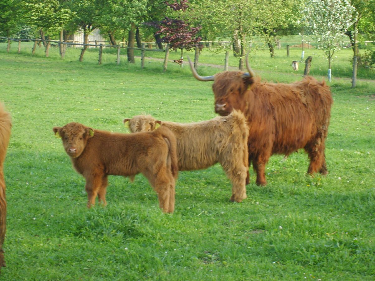 Ein Highlandrind kann so schnell nicht aus der Ruhe bringen, sein entspanntes Gemüt erleichtert auch den Umgang mit ihm. So kommt es nicht selten vor, das ein Absetzer schon gleich beim ersten Mal ohne große Probleme am Halter zu führen ist.