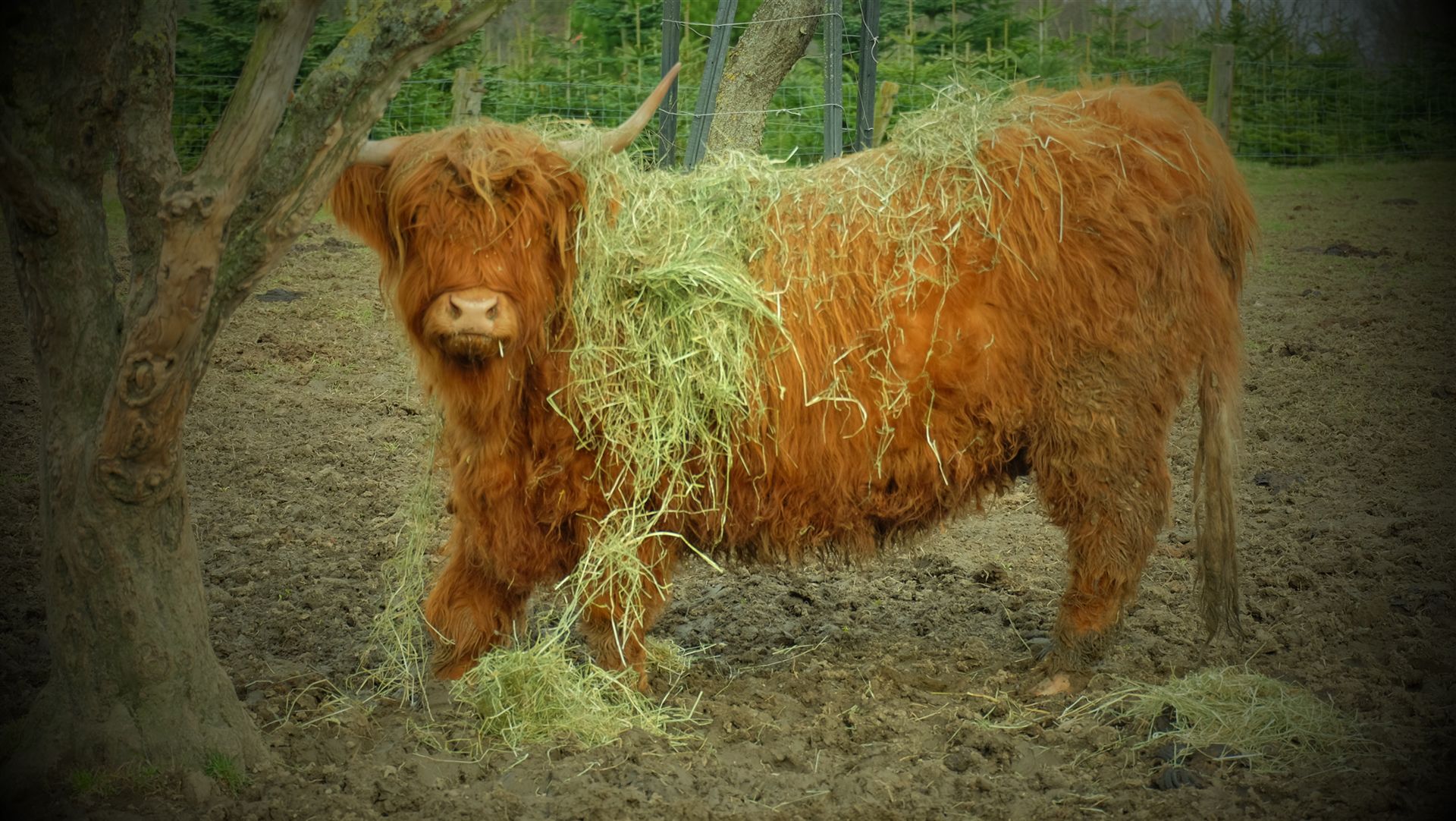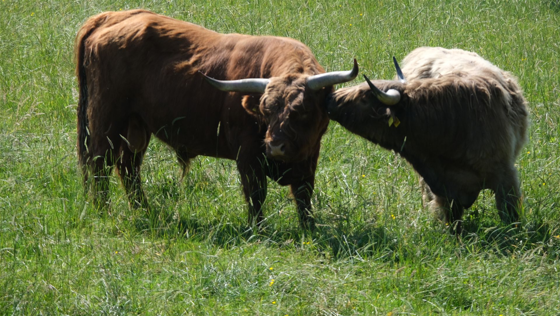 Besonders lieben es Highlands, wenn man mit dem Kamm zu ihnen kommt und Fellpflege betreibt - welch ein Genuss!